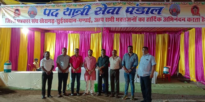 इसी क्रम में जिला पत्रकार संघ ने खैरागढ़ के नए बस स्टैंड परिसर में विशेष सेवा पंडाल की शुरुआत की है। इस पंडाल में श्रद्धालुओं के ठहराव के लिए बेड की व्यवस्था, प्राथमिक चिकित्सीय सुविधा और दवाइयां उपलब्ध कराई गई हैं। साथ ही यात्रियों को तरोताज़ा रखने के लिए फल, बिस्किट और चाय का निःशुल्क वितरण भी किया जा रहा है।