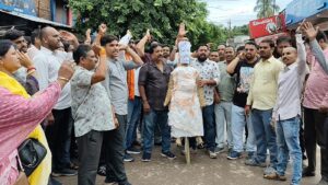 भारतीय जनता युवा मोर्चा ने सोमवार को राहुल गांधी के खिलाफ जोरदार विरोध दर्ज कराया। कार्यकर्ताओं ने नगर के राजीव चौक पर राहुल गांधी का पुतला दहन कर नारेबाजी की और कांग्रेस पर प्रधानमंत्री नरेन्द्र मोदी का अपमान करने का आरोप लगाया।