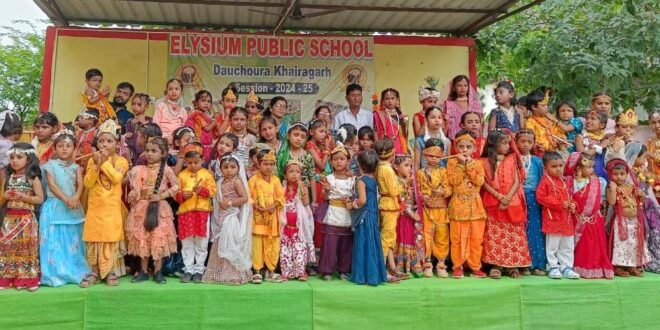 एलिजियम पब्लिक स्कूल में शनिवार को श्रीकृष्ण जन्माष्टमी का पर्व बड़े ही हर्षोल्लास और श्रद्धा के साथ मनाया गया। इस अवसर पर विद्यालय परिसर को रंग-बिरंगी झंडियों, फूलों और कृष्ण लीलाओं से संबंधित झांकियों से सजाया गया। छोटे-छोटे बच्चे राधा-कृष्ण की वेषभूषा में स्कूल पहुंचे और सभी का मन मोह लिया।