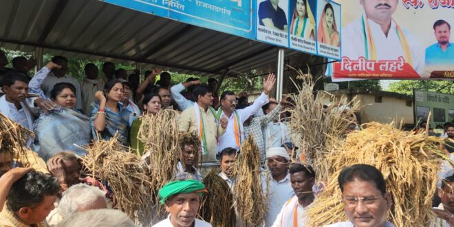 जिले में हुई बे-मौसम बारिश ने किसानों की मेहनत पर पानी फेर दिया है। फसलों के भारी नुकसान से आक्रोशित हजारों किसान आज जिले के सैकड़ों गांवों से धान की बालियां लेकर खैरागढ़ जिला मुख्यालय पहुंचे। विधायक यशोदा वर्मा के नेतृत्व में किसानों ने कलेक्ट्रेट परिसर के सामने जोरदार प्रदर्शन किया और फसल नुकसान का सर्वे कराकर तत्काल मुआवजा एवं बीमा राशि जारी करने की मांग की।