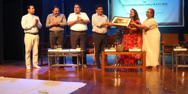 मुख्य अतिथि डॉ. राजेश पांडेय ने राष्ट्रीय शिक्षा नीति की आवश्यकता और प्रासंगिकता पर विस्तारपूर्वक चर्चा करते हुए बताया कि एनईपी 2020 में भारतीय ज्ञान परंपरा को समाहित किया गया है। इसका मूल उद्देश्य विद्यार्थियों को आत्मनिर्भर और स्वावलंबी बनाना है।