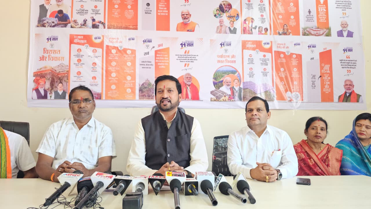 भाजपा नेताओं ने कहा कि मुख्यमंत्री द्वारा जिले को करोड़ों की विकास योजनाएं दी जा रही हैं, पर कांग्रेस की आंतरिक लड़ाई इन योजनाओं पर ग्रहण लगा रही है।