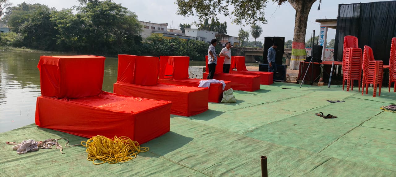 समिति के सदस्यों ने बताया कि घाट परिसर में बड़े पंडाल लगाए गए हैं, बिजली व्यवस्था और प्रसाद वितरण की जिम्मेदारी स्वयंसेवकों को दी गई है।