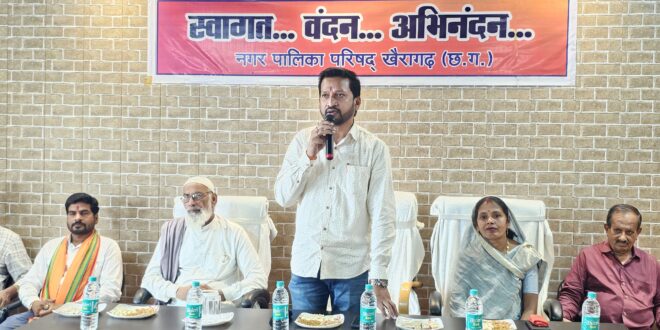 मुख्य अतिथि विक्रांत सिंह ने नगर विकास को लेकर सभी जनप्रतिनिधियों और नगर पालिका के कर्मचारियों से मिलकर समर्पण के साथ कार्य करने का आग्रह किया। उन्होंने बताया कि जब खैरागढ़ को “बेस्ट नगर पालिका” का पुरस्कार मिला था, उस समय वे अध्यक्ष थे और सभी के सामूहिक प्रयास से यह संभव हुआ था। उन्होंने मुख्यमंत्री द्वारा नगर के लिए की गई घोषणाओं के लिए आभार व्यक्त किया और कहा कि अनुभव और सहयोग से खैरागढ़ को फिर से एक आदर्श नगर बनाया जाएगा।